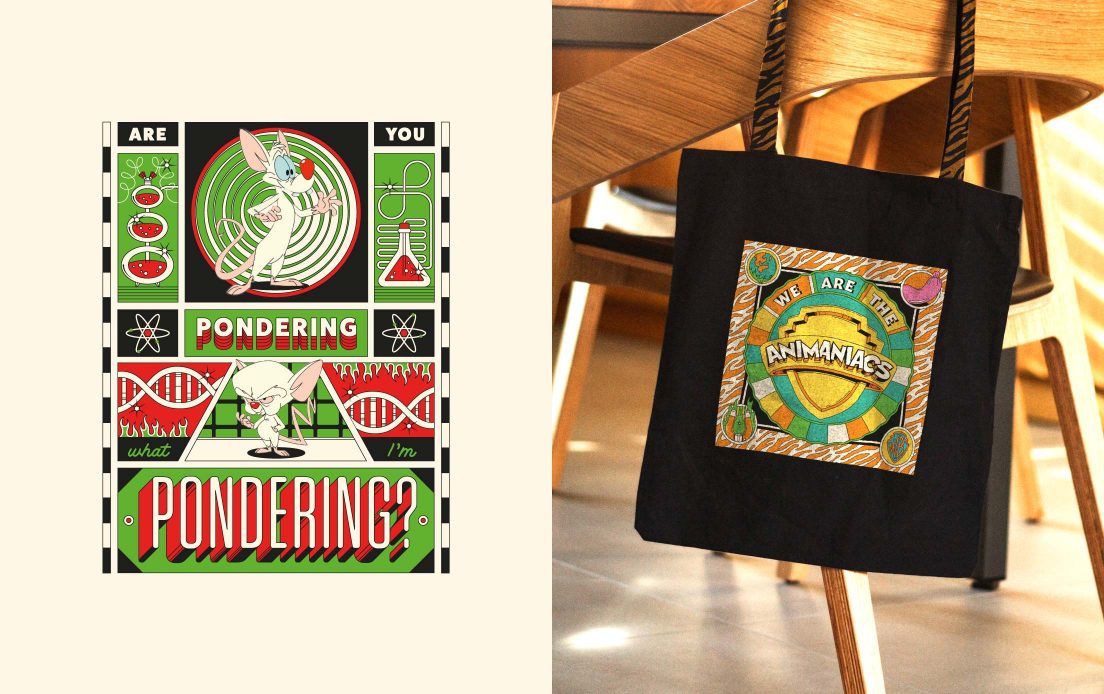 Targeting the nostalgic audience who were fans of the 80s series, as well as new Gen Z viewers, we developed a look n feel that was inspired by the colourful energetic tone of Animaniacs, whilst remaining on brand and fitting organically with the original character artwork. The toolkit will be used for apparel and accessories globally.