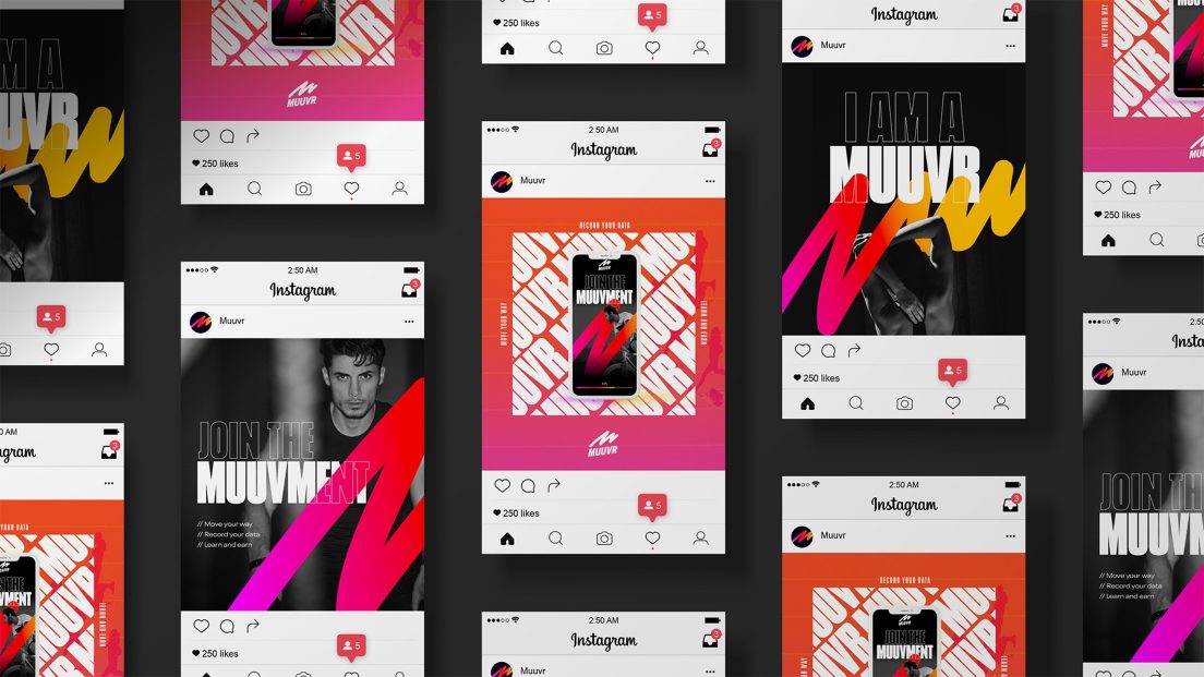 Working with 17days we developed the brand identity for Muuvr, a game-changing app allowing active people to learn and earn from their data. Muuvr allows the community to choose which organisations can use their data and then trade their data for crypto currency, which the user can spend on special access to sports events and premium sports products.